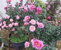 玄関先に大事に育てられている菊が少しずつ開花し始めました。