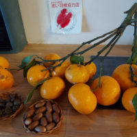 職員が枝付きのみかんを持ってきてくれました。
