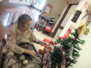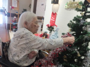 今日は、利用者の方々とクリスマスツリーの飾りつけを行いました(*^-^*)