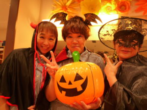 今日だけは職員もハロウィンの仮装をして皆様をお出迎えしてます!
