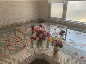 浴室に入り浴槽一面のバラの花を見て「うわ~今日はバラ湯」「いろんなバラの花の色があるね」など仰られバラ湯🌹🛁を堪能されていました🥰