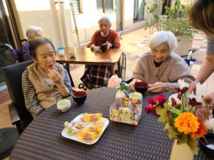 今回は、茶菓子や栄養課にて準備して頂いた芋ぜんざいを召し上がって頂きました!(^^)!