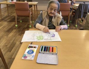 今回は皆さんに習字・塗り絵・貼り絵を行なってもらいました👩🏻🎨