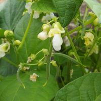 庭に植えたインゲンに花が咲き、小さいですが実が付きはじめました。