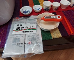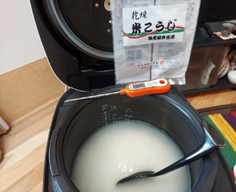 米麹とお湯と温度計を準備・そして大事なことは60度の温度をキープする事。