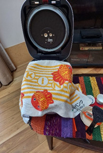 炊飯器にタオルをかけて、蓋を開けて保温へ