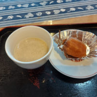 そして2日経過した甘酒を、干し柿を添えて入居者様のおやつに・・
