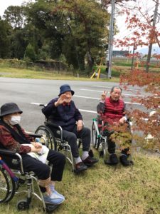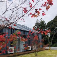 ユニットの窓から赤く色づいた紅葉が見え、秋だなーと感じています🍁