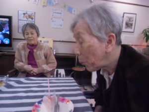 お誕生日の曲を皆さんで歌い、誕生日ケーキのろうそくの火をフーっと勢いよく消して頂きました!