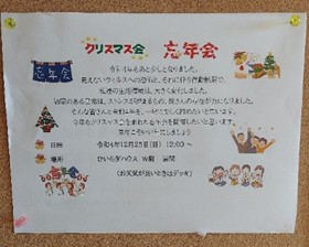 クリスマス会当日です。皆さん積極的に手伝っていただきました。