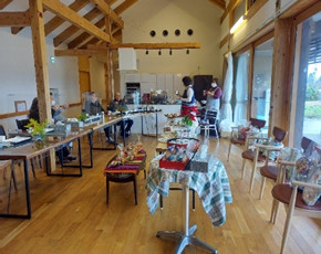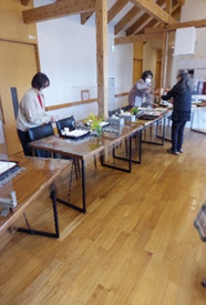 コップや箸置き、盛り付け迄・・・女性陣大活躍です。