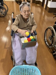 クリスマス会の前にまつVSらんの利用者同士でボール投げを行いました(^_-)-☆