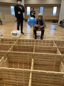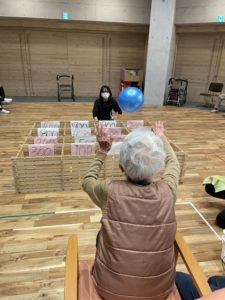 今日のリハスポは、ねせて置いた木枠の中にボールを投げ入れて頂きました‼️