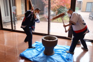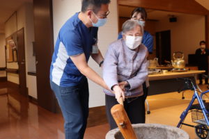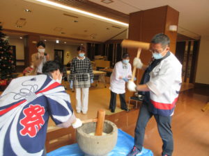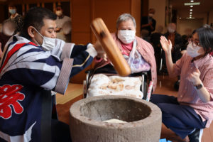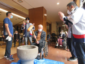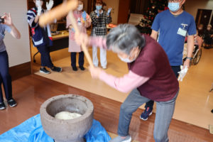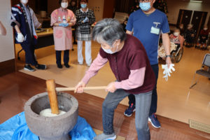 利用者さんも餅つきに参加して下さいました。