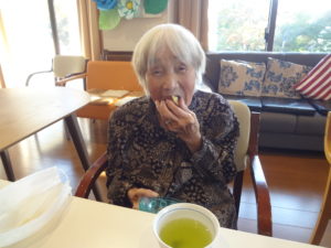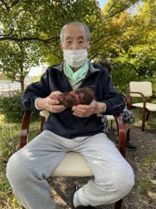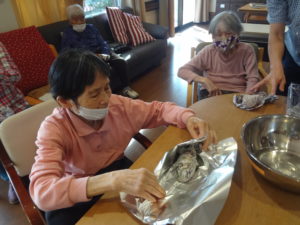 焼き芋をみたご利用者様、自然と笑顔になられていました。