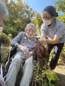 からいもが、どの程度育っているかわからずドキドキでしたが、ご利用者様と一緒にさつまいもの収穫を行いました。