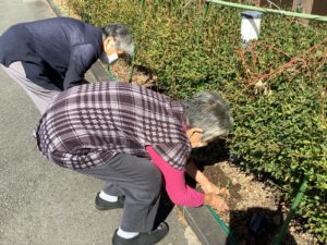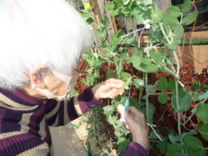 8日で発芽したので、余暇の時間に利用者2名で地植えをして頂きました。