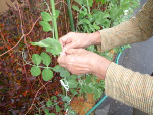 つるが伸びるたびに倒れないように紐で結んで頂いています。