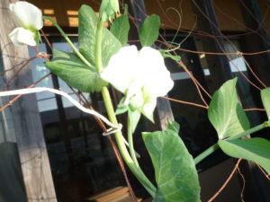 10月1日に園芸用のポットに割り箸で穴を空けて、丁寧にエンドウ豆の種薪を植えました。