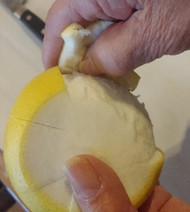 「母がね。こうやって剥いて皿にのせて食べさせてくれていたのよ、」と手早く剝かれます。