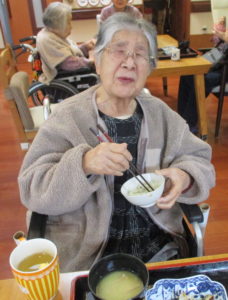 「美味しいよ」「めずらしかね」と笑顔で食事をされていました。