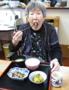「美味しいよ」「めずらしかね」と笑顔で食事をされていました。