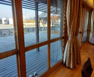 網戸を左右にしまい、カーテンも両脇に移動すると・・・