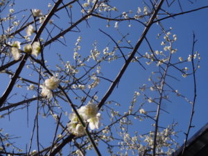 ふと居室の窓から外を眺めると、梅の花が咲いていましたので
