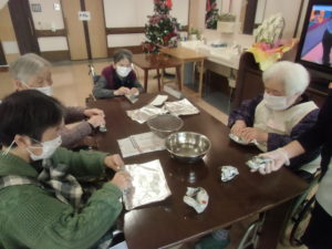 一口サイズに丸めながらホイルに入れます。