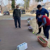 午前中の余暇時間にウッドデッキでグランドゴルフを行いました⛳
