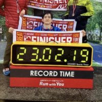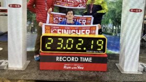9時にスタートしてからは自分のペースでしっかり走ることができました。後半は足の痛みもあり歩く事も多くなりましたが、沿道の多くの方の応援もあり無事時間内に42.195㎞を完走出来ました!!