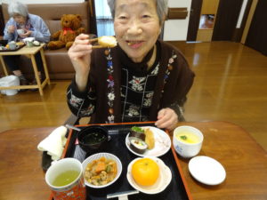 本日の、節分メニューはこちら⇩(※左が普通食と右が軟菜食になっています)