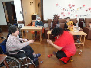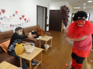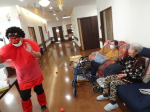 準備していた、お手玉で、容赦なく鬼退治されています(笑)