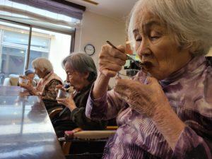 一緒にお祝いして下さった皆さんもおやつのプリンを美味しそうに