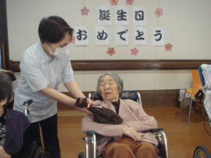 皆で茶話会をしました☕「おめでとう👏」と声をかけておられますよ!
