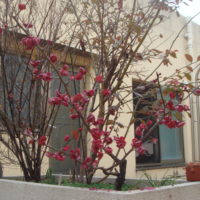 中庭のお花もきれいに咲いてます。梅の花が開いてますよ~。可憐です😊