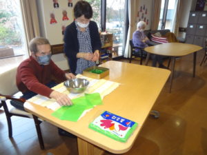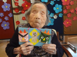 今回投げる豆は、ご利用者の皆様と一緒に何日もかけて作りました。