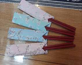 お菓子だけではと、箸袋と箸置きを折り紙で作ってみました。
