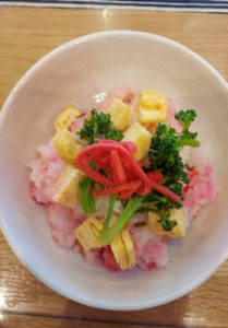 御飯はちらし寿司・汁は花麩をいれて華やかに・・