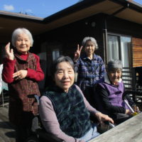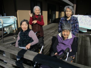 「やっぱり外は気持ちいいね~」「まばゆいごた」「洗濯物もすぐかわくど?」と会話が弾みます😀