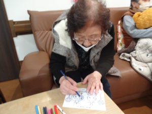 実は、皆さんに雛人形の塗り絵をお願いしていましたので