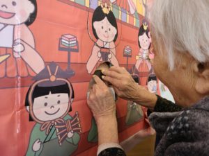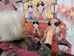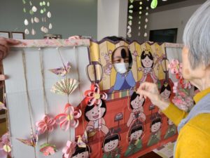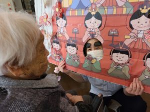 見ている職員も温かい気持ちになりました。雛祭り当日が「楽しみね」とウキウキ💕
