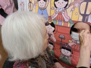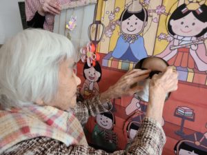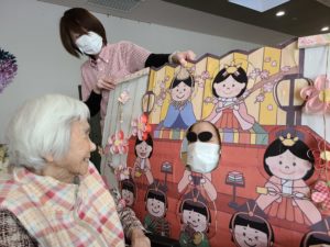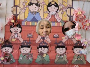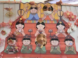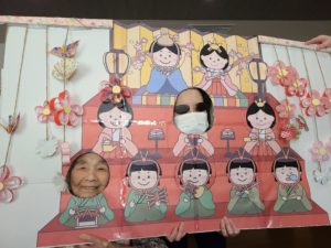 午後からは職員手作りの雛祭り顔パネルで、ちょっとしたお遊びを行いました。