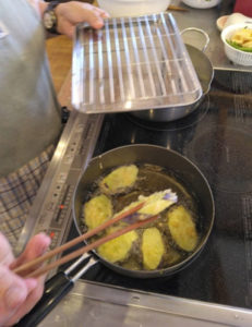 皆さんにお配りする形で揚げたての天ぷらを食べて頂きました。