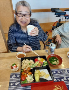 設えには、男性入居者様が協力頂きましたが、花見弁当は女性入居者様にお手伝い頂きました。