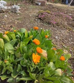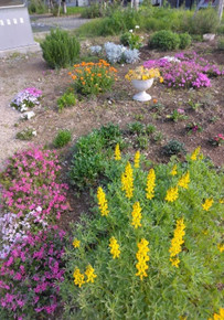 東側の花壇にはキンセンカや芝桜、鮮やかなルピナスの花が咲きはじめました。