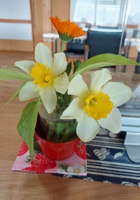 玄関には、水仙が咲き、早速、卓上花にして楽しみました。
