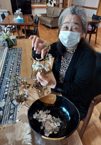 「桜の花の塩漬けにしてみよう」と一つ一つ丁寧に、桜を摘んでくれました。