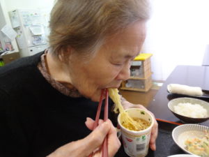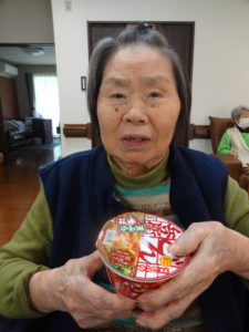 との事で、色んな味のミニカップ麺を準備し、昼食と一緒に提供致しました。