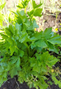 ひいらぎの庭には、セロリやニラ、三つ葉にイタリアンパセリ、パセリ、